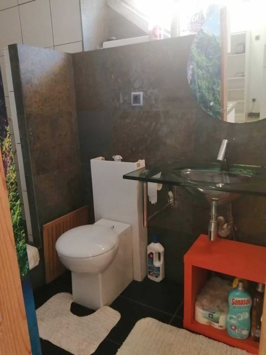 T1 mobilado e equipado com park p 1 carro com máximo ocupação de 2 adultos. Cozinha com fogão, forno elétrico, micro-ondas e frigorifico. Casa de banho com base de chuveiro, sanita e lava-mãos com janela. 1 Quarto cama de casal com roupeiro, cómoda e cama de casal e secretária de 2 metros. Chão em parquet flutuante nos quartos e ceramica na cozinha e casa de banho. Janelas de pvc duplas com estores. Despesas não incluídas e a dividir com outro apartamento de 2 pessoas. Condições: 2 meses de renda e 1 caução. Não tem condições para ter animais. Visitas só com marcação prévia. Disponível
